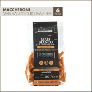 1 confezione da 250 gr di Maccheroncini Mais Bianco Curcuma e Pepe